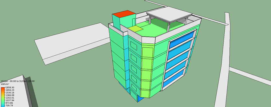 The solar shading analysis also plays a critical role in the installation of photovoltaic (PV) panels, which are used to generate renewable energy for the building. By identifying areas of the building with the highest solar exposure, we can determine the optimal location for PV panel installation.